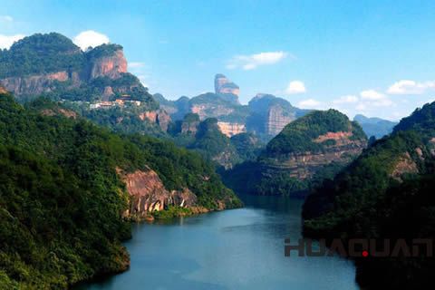 位于仁化縣城南9公里的丹霞山,被譽(yù)為“嶺南 奇山”。此山以赤色丹霞為特色,風(fēng)光秀麗,景色宜人,與南海羅浮山、博羅羅浮山、肇慶鼎湖山等并稱“廣東四大名山”。1928年,馮景蘭(注:地質(zhì)教育家、地貌學(xué)家)等就是在丹霞山這里發(fā)現(xiàn)了丹霞地貌,并把形成丹霞地貌的紅色砂礫巖層命名為丹霞層,由此,丹霞山就成了世界“丹霞地貌”命名地。以丹霞山為中心設(shè)立的“丹霞山世界地質(zhì)公園”,面積達(dá)319平方公里,2004年經(jīng)聯(lián)合國(guó)教科文組織批準(zhǔn)為中國(guó)首批世界地質(zhì)公園之一。此外,仁化縣還存留著大批人文景觀,如雙峰寨、云龍寺塔、文明峰塔與華表峰塔等。紅扣黑山羊、烤黑山羊腿、丹霞臭豆豉魚、四螺香煲、船家包大蝦、益母草煎蛋等是深受人們喜愛的仁化當(dāng)?shù)靥禺a(chǎn)。