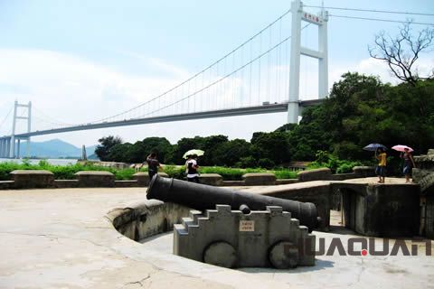 關(guān)于虎門,還有一個(gè)美麗的傳說(shuō)呢。傳說(shuō)很久以前,南海龍王敖欽為了解救被蓮花山虎精掠走的小女兒亞娘,派出魚、蝦二將用神棍將老虎精打死。沒想到老虎是母的,且有孕在身,臨死之時(shí)竟然生下了一個(gè)老虎死胎。南海龍王不放心,怕它們死而復(fù)活,于是用一把金鎖將虎精與死胎鎖在珠江中。后來(lái),大小二虎變成了橫臥江中的兩座山島,恰似兩個(gè)衛(wèi)士在守門,因而得名——虎門。