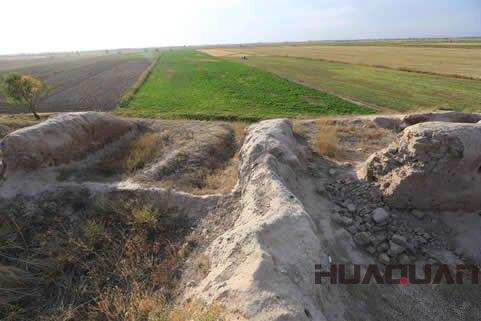據(jù)唐玄奘《大唐西域記》記述,自凌山行400余里至大清池(伊塞克湖),清池西行500余里至碎葉水城,城周六七里,諸國商胡雜居。根據(jù)這一記載,有人在楚河南岸找到了碎葉城遺址。經(jīng)過1000多年的風(fēng)吹沙打,雨水沖刷,這座唐代中國城已風(fēng)化瓦解為一座巨大的土堆。