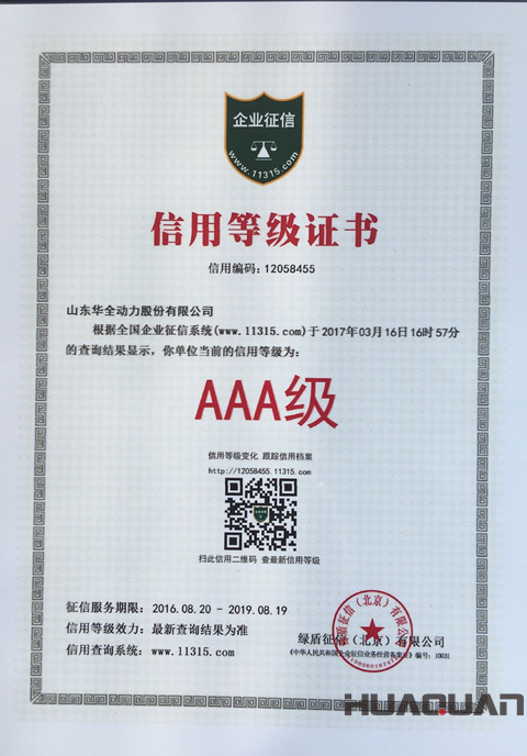 華全動力榮獲綠盾企業(yè)征信系統(tǒng)AAA級單位 2017-04-08
